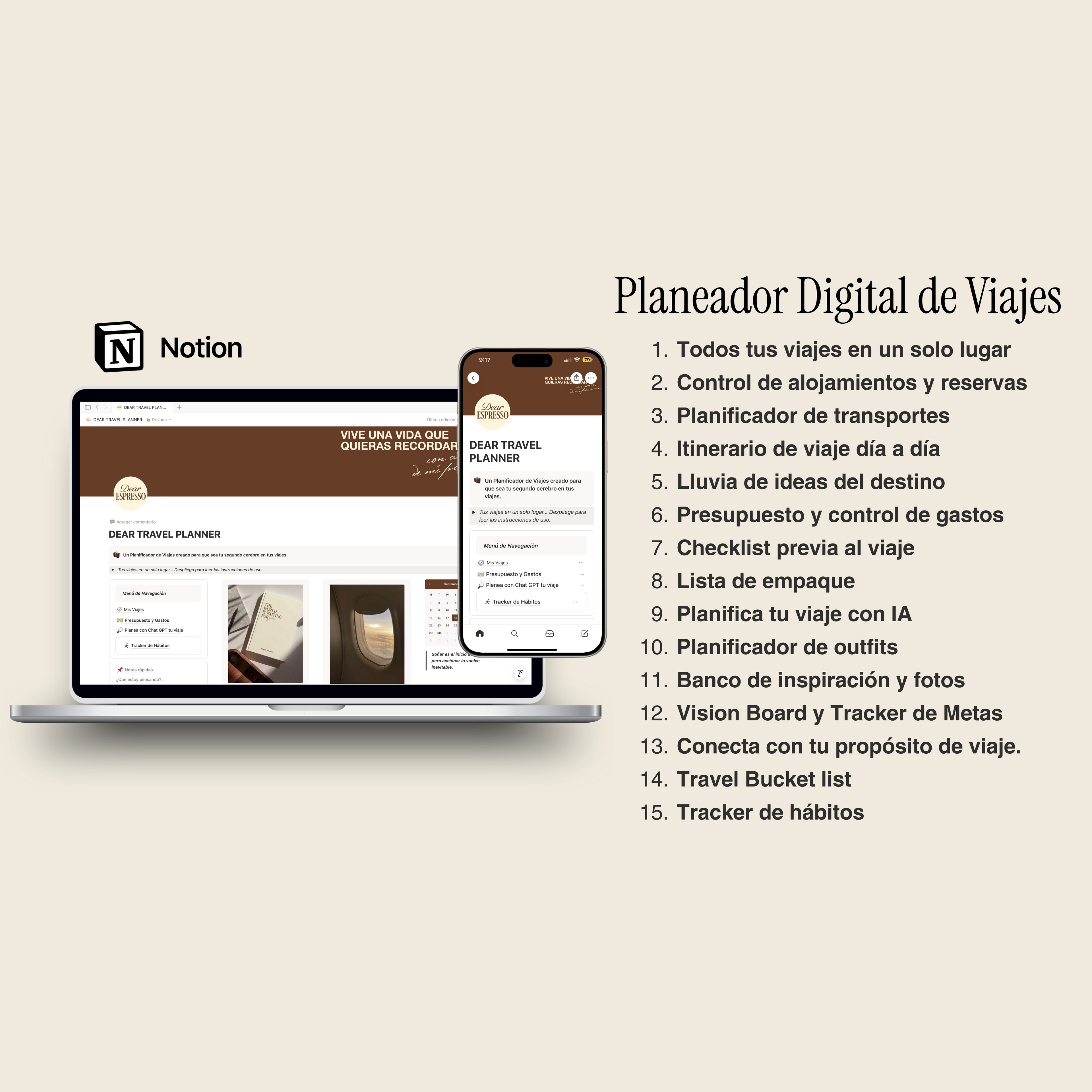 Aquí podrás adquirir lo mejor del mundo digital y el mundo físico que Dear Espresso tiene para ti. La experiencia completa para viajar con intención, escribir tus recuerdos y planear cada destino con claridad. Llévalos juntos por un precio especial.