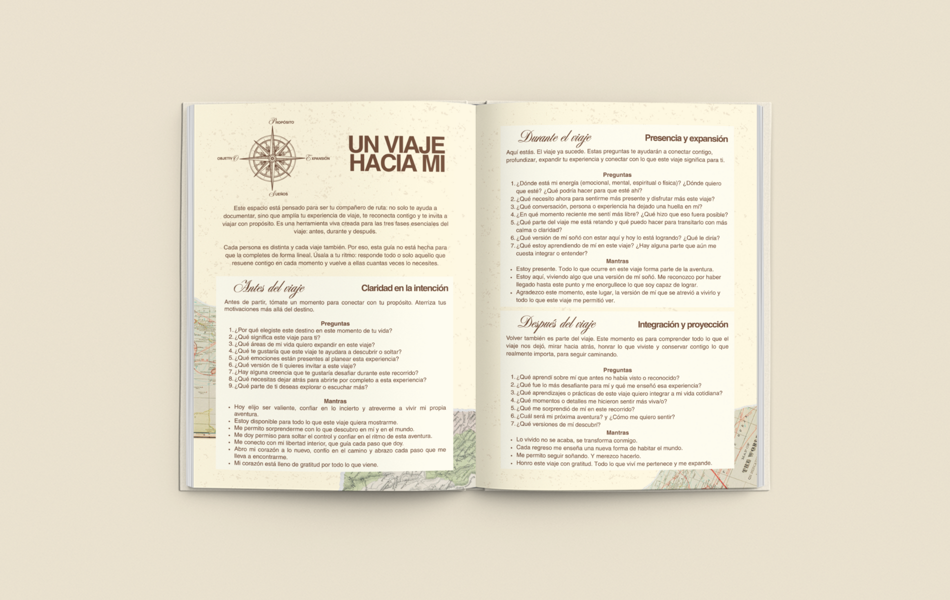 Para conectar con tu Alma Viajera, con ejercicios que te acompañan antes, durante y después de cada viaje, ayudándote a viajar con claridad y propósito.